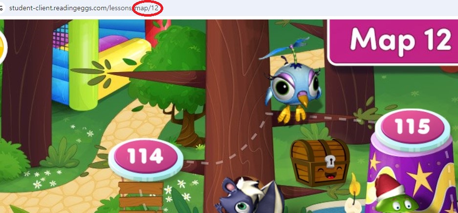 Reading Eggs는 10개의 레슨이 1개의 Map으로 묶입니다.